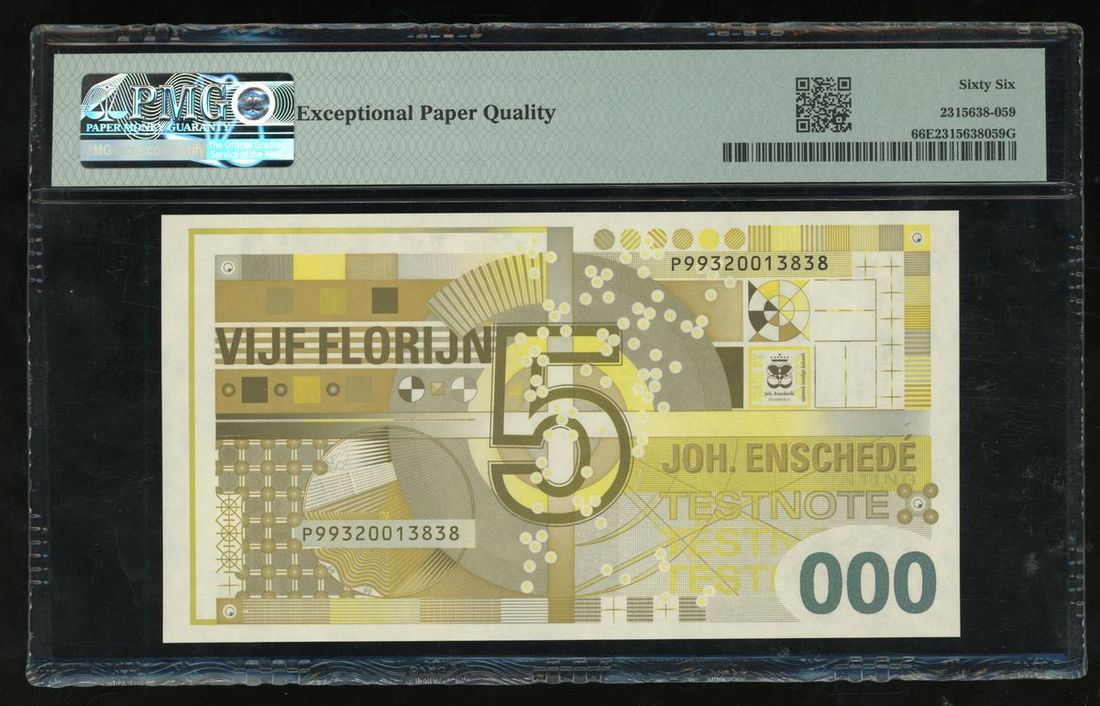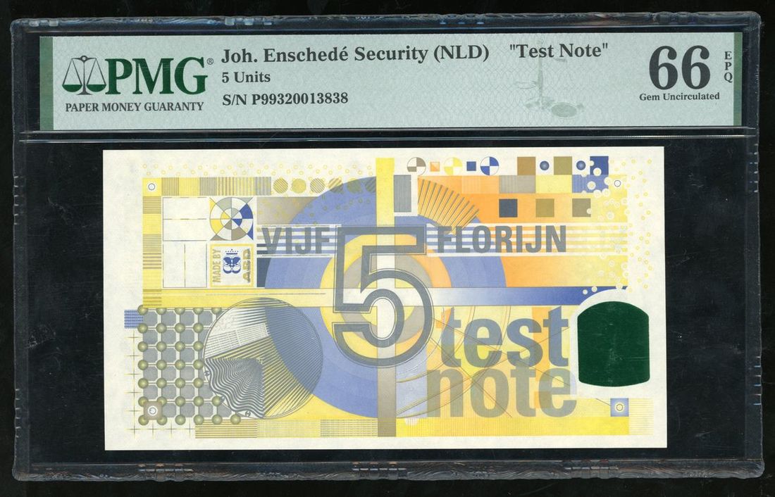 Joh. Enschede Security (NLD), Test Note, 5 Units, serial number P99320013838, PMG 66EPQ