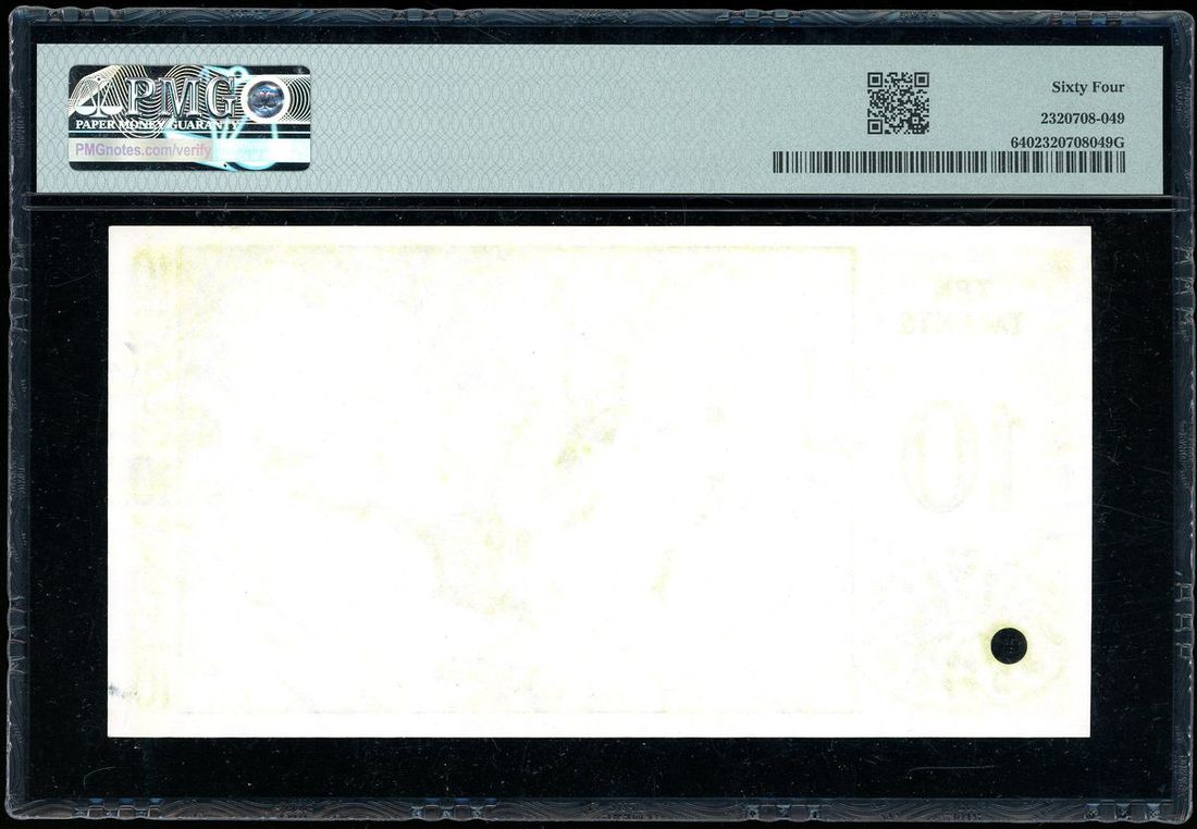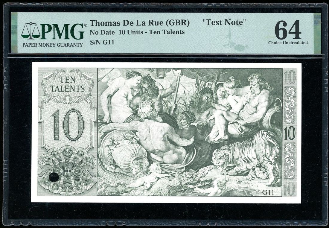 Thomas De La Rue Test Note, 10 united, ND, serial number G11, green,
