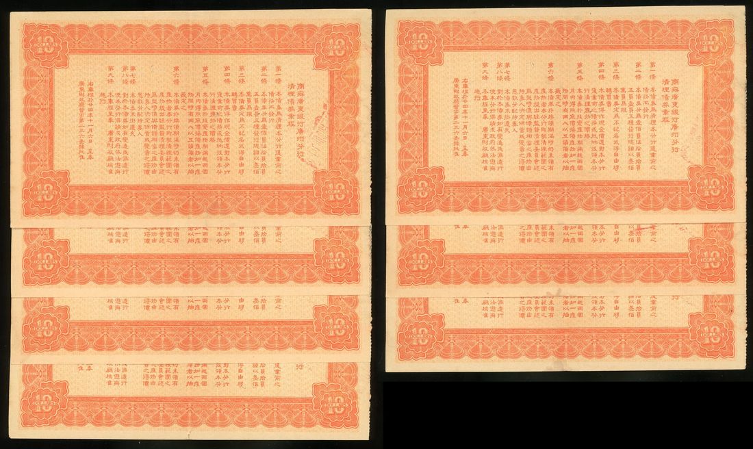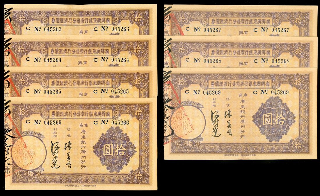 Kwangtung Bank Canton Branch Re-organisation Bond, China, consecutive 10 yuan (7), Year 24 (1945), serial number 045263-69, all with one centre crease, good extremely fine (7)