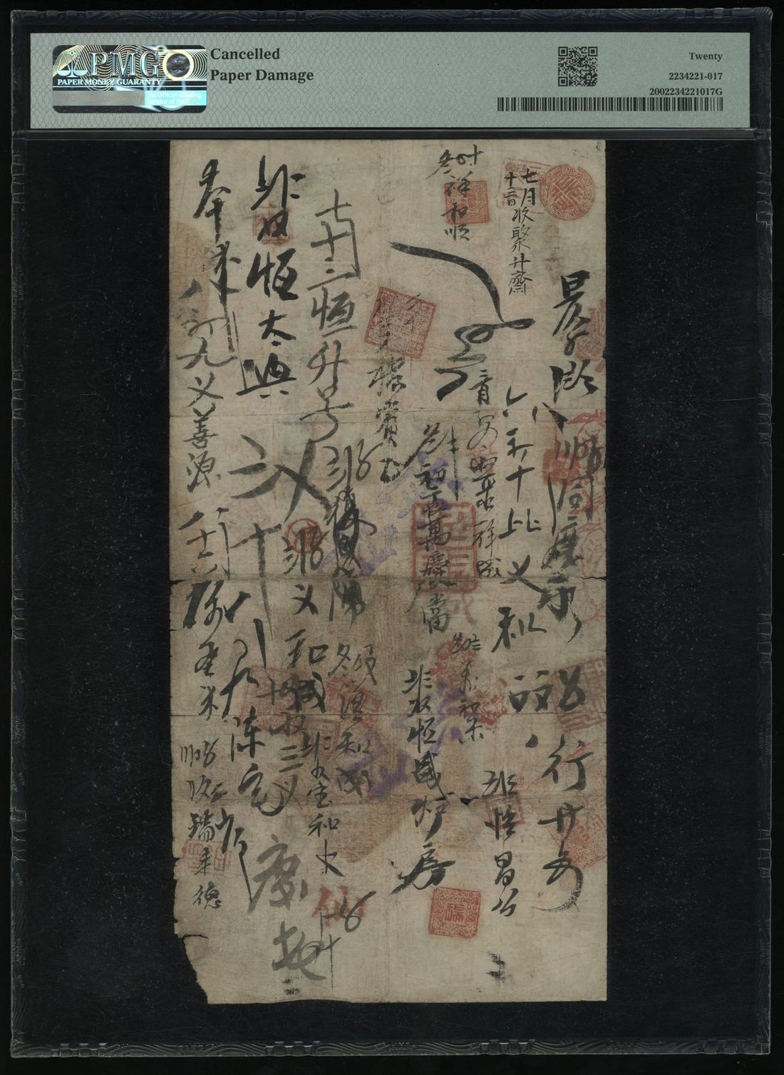 Yokohama Specie Bank, China, 20 taels, Guangxu Year 29 (1903), Peking, low serial number 0009, PMG 20, cancelled, paper damage.