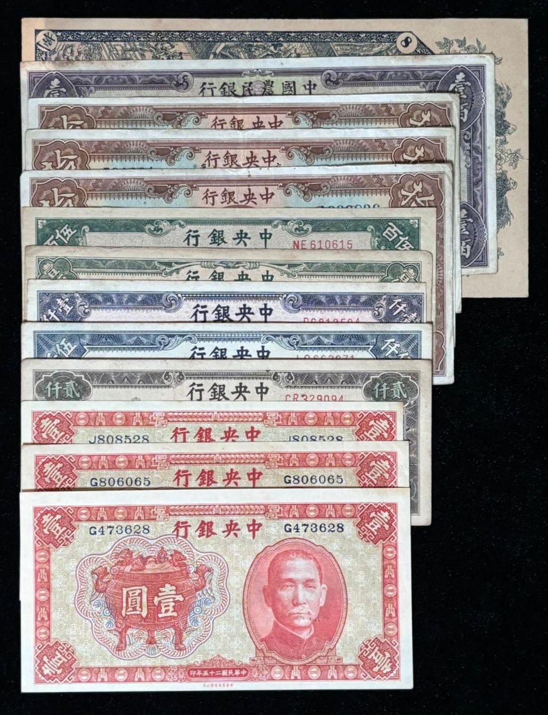 China, a group of 22x, including, -Central Bank of China Year 12 10 yuan (2), Year 25 1 yuan (3), Manchuria circulation issues (5),