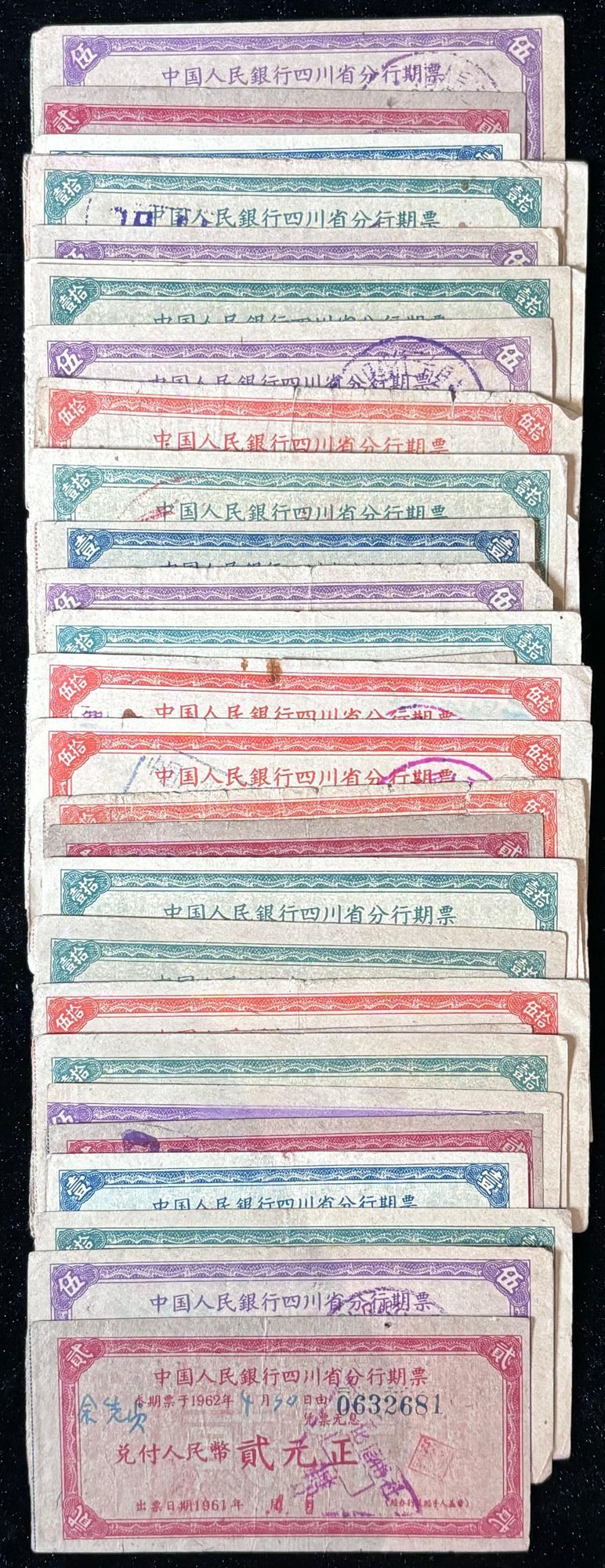 People's Bank of China, Gansu and Sichuan branches, a group of post dated cheques, includes 30x Gansu and 49x Sichuan, all used, balance very fine (79),
