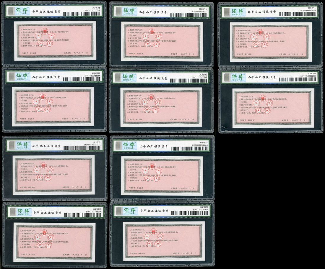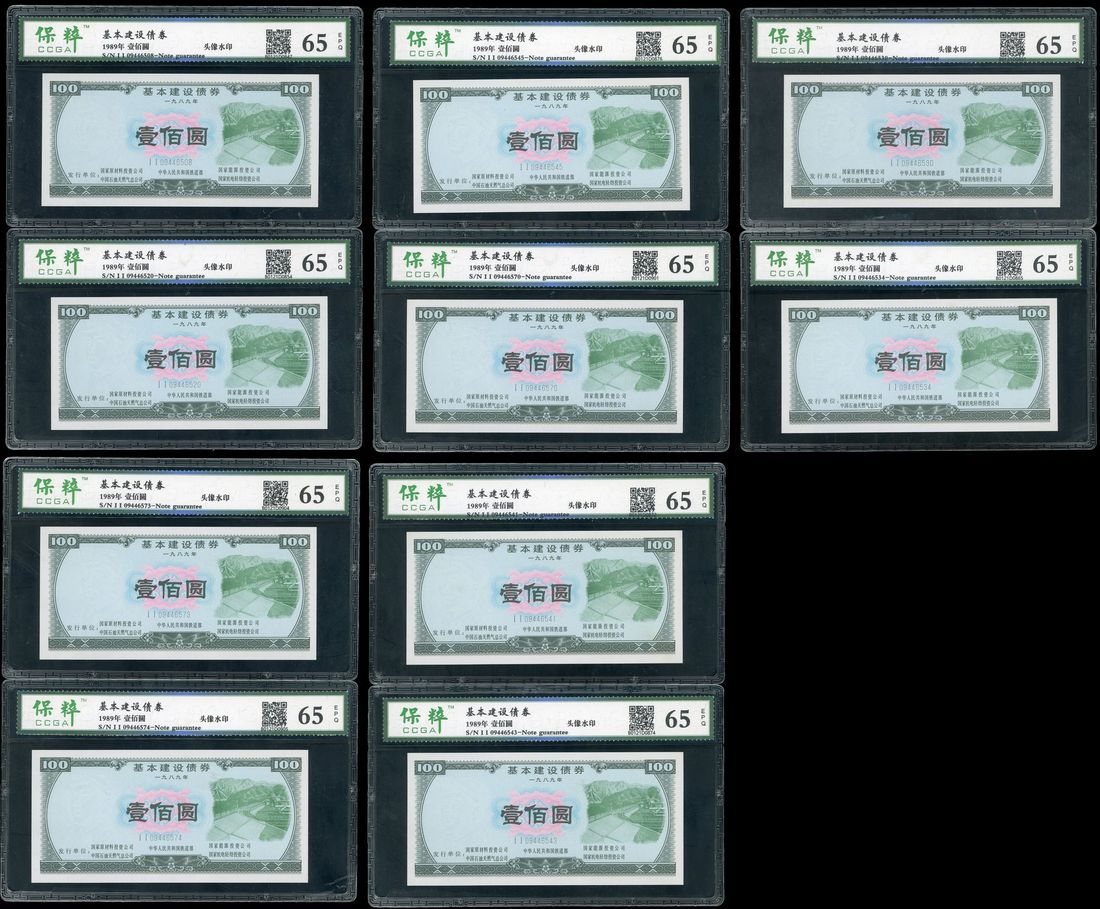 People's Republic of China, Construction Bond, 100 yun (10), 1989, all CCGA grade 65EPQ. Uncirculated (10)