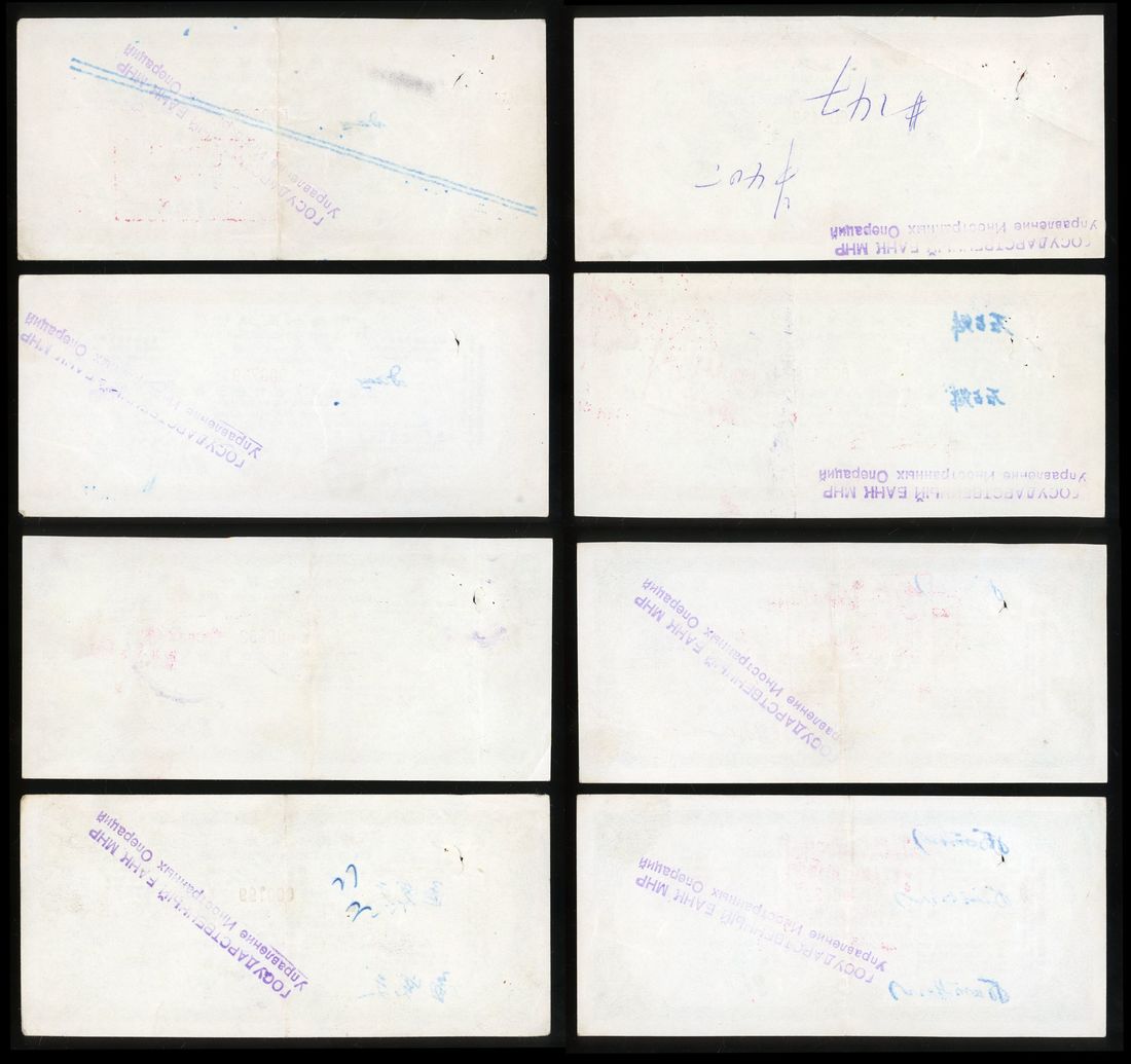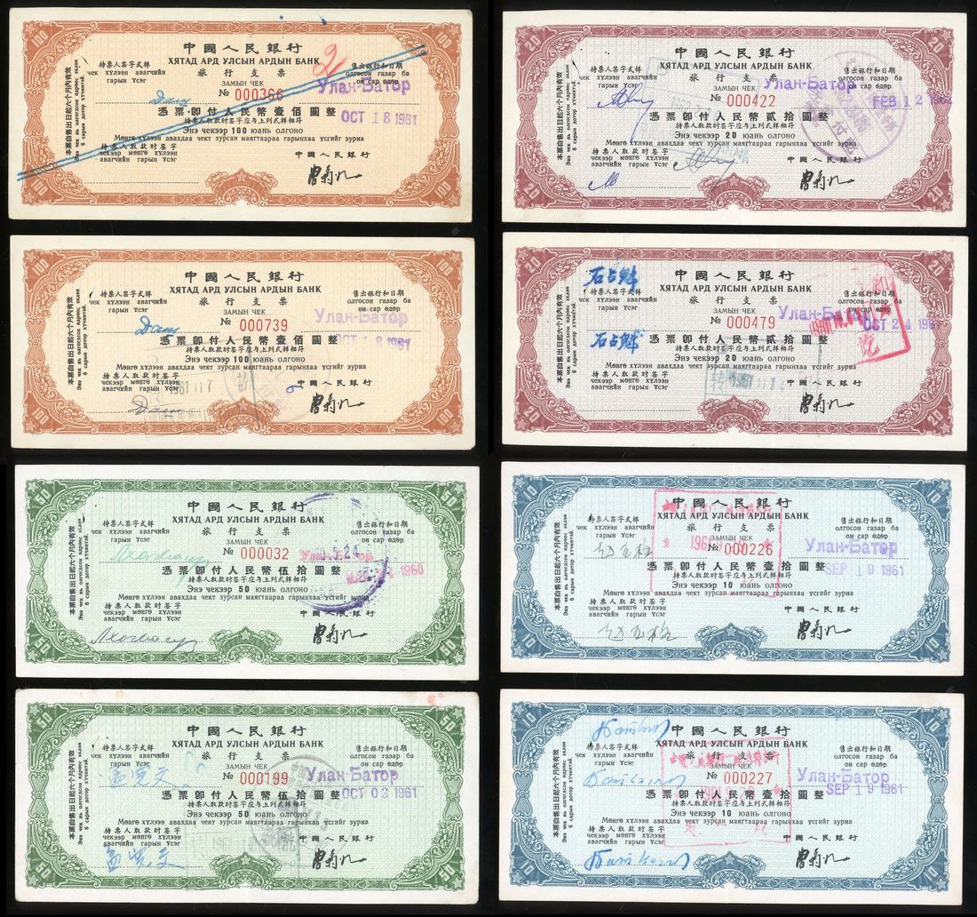 People's Bank of China, a group of 8x, including, 10 (2), 20 (2), 50 (2) and 100 (2) yuan, ca.1960s, in Chinese and Cryrllic,