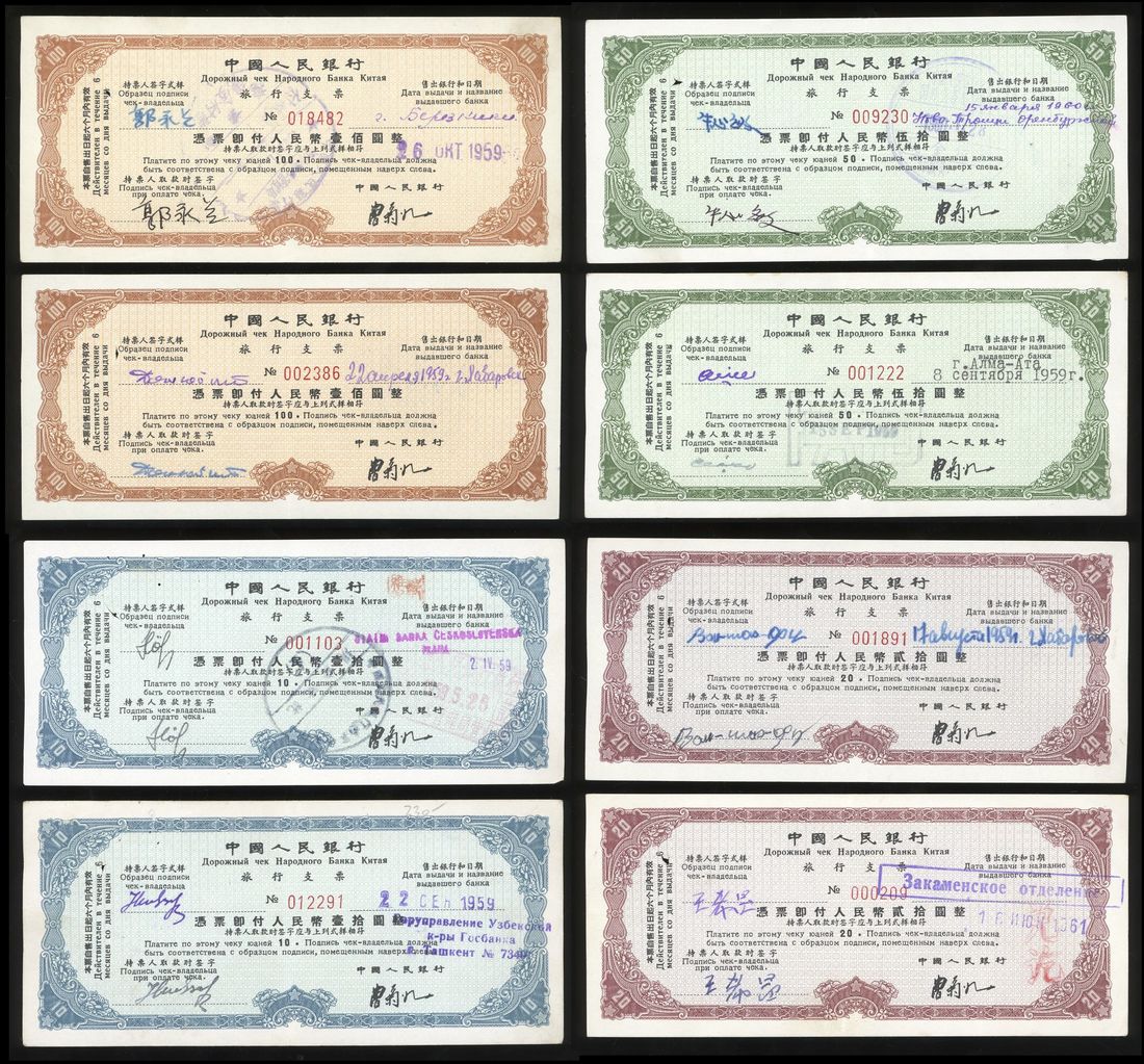People's Bank of China, a group of 8x, including, 10 (2), 20 (2), 50 (2) and 100 (2) yuan, in Chinese and Cryrllic,