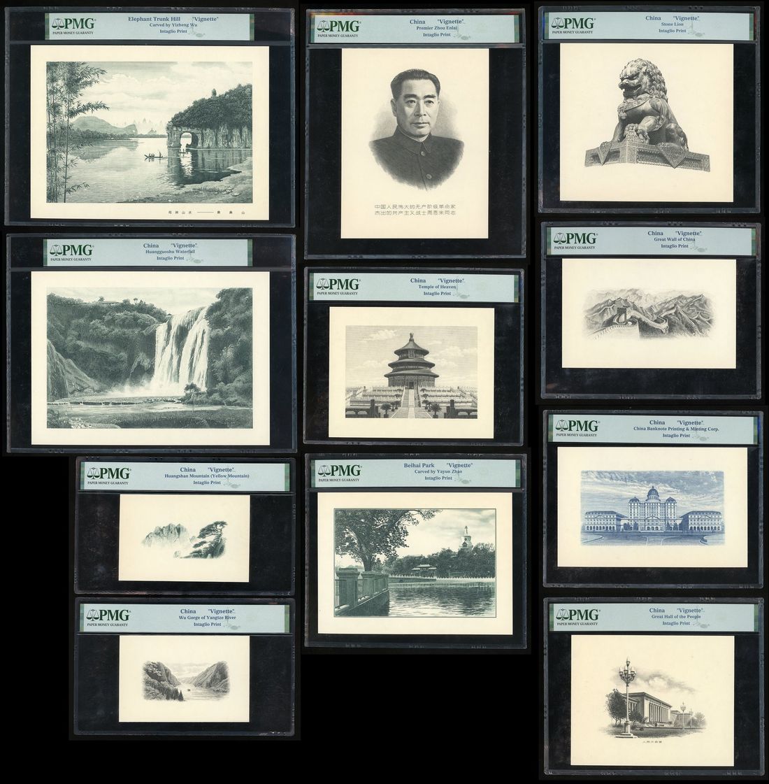 China, Intaglio Vignettes, a group of 11x, including, -Huangshan Mountain (Yellow Mountain),