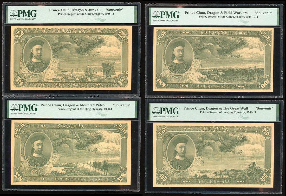 Ta-Ching Government, China, a group of 4x souvenir notes, including 1, 5, 10 and 100 yuan, green,