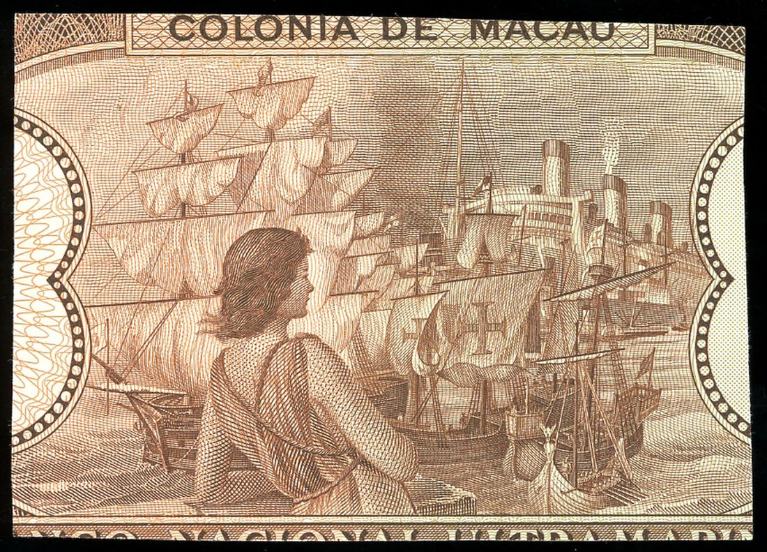 Banco Nacional Ultramarino, Macau, a partial cut up uniface proof for a 25 patacas, 1948, engraved, uncirculated. Interesting format