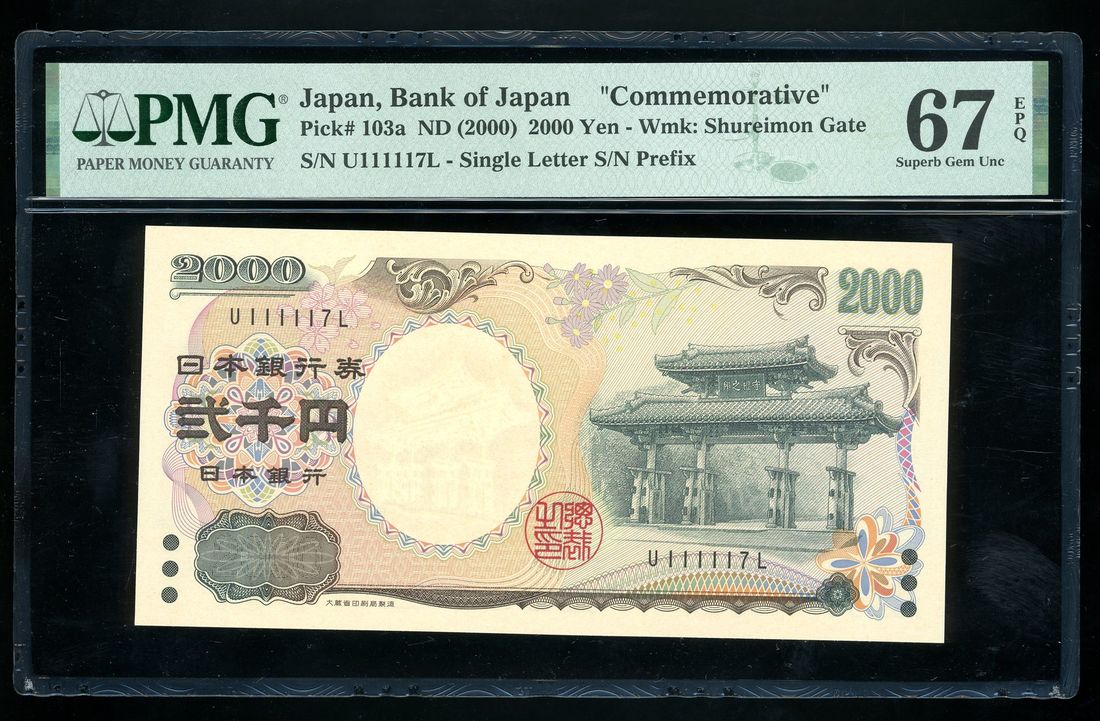 Bank of Japan, Japan, 2000 Yen, ND(2000), serial number U111117L, 'Commemorative', (Pick# 103a),