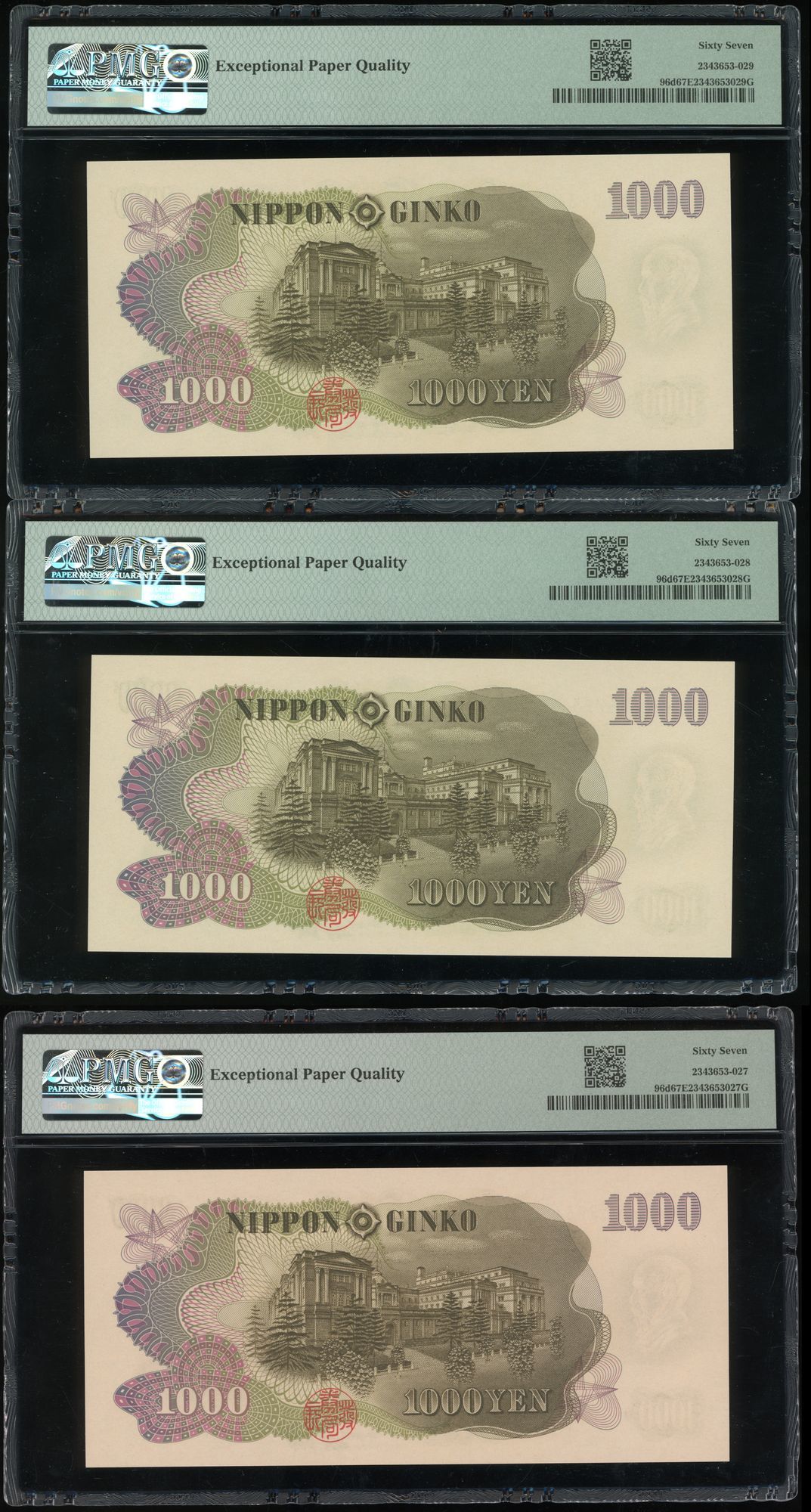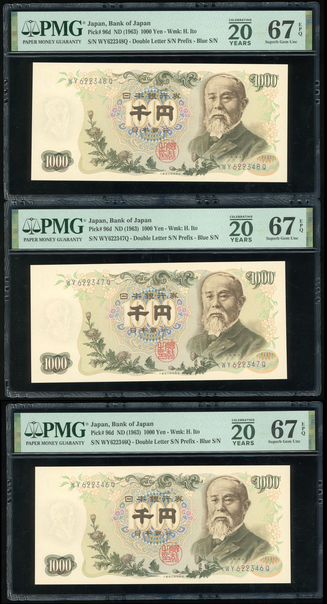 Bank of Japan, Japan, a group of 3X 1000 Yen, ND(1963), serial number WY622346Q/347Q/348Q, (Pick# 96d),