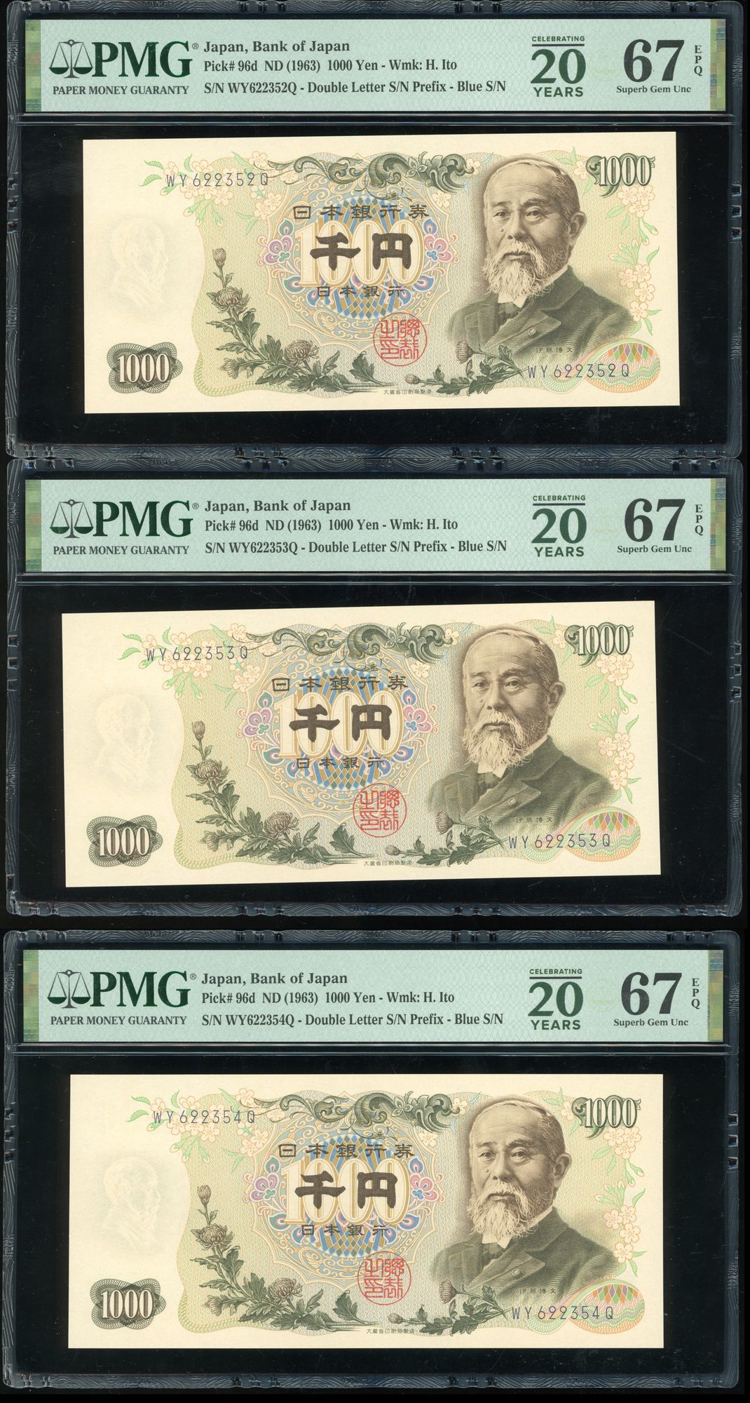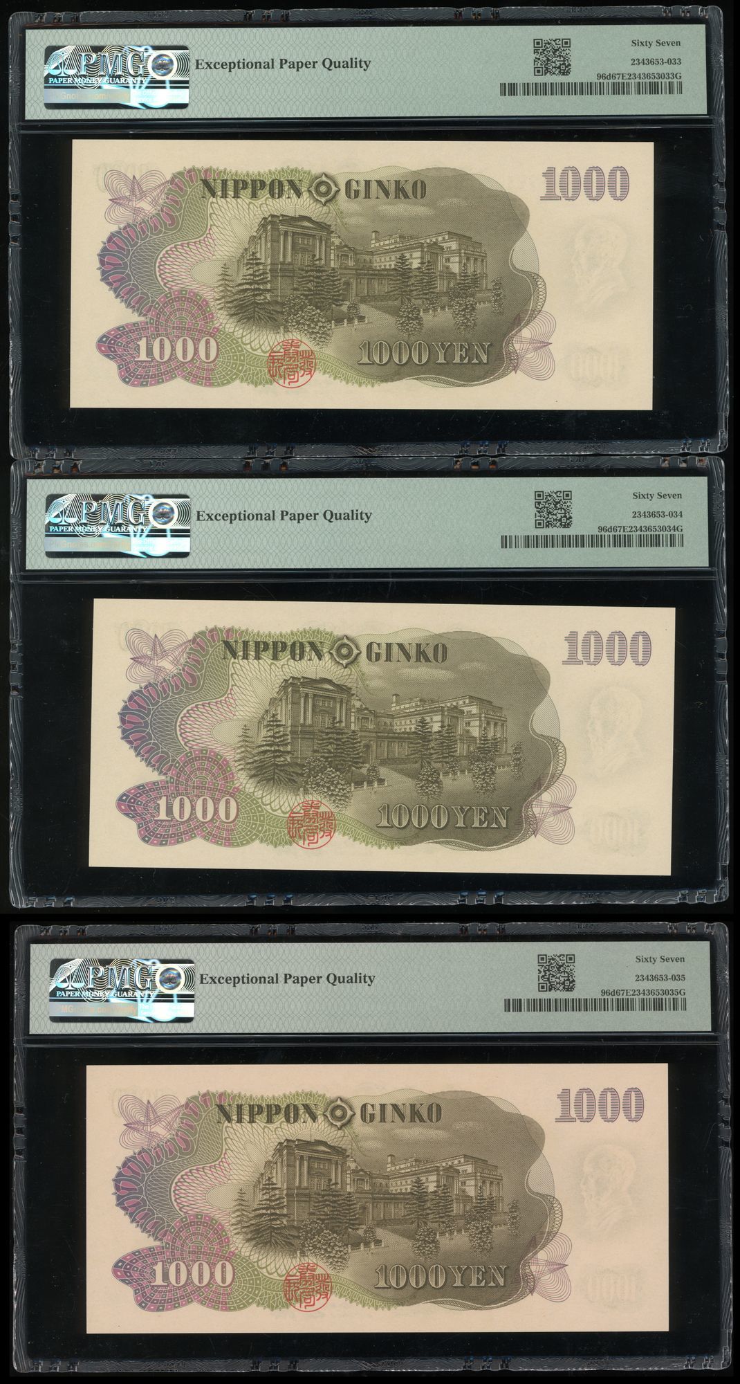 Bank of Japan, Japan, a group of 3X 1000 Yen, ND(1963), serial number WY622352Q/353Q/354Q, (Pick# 96d),
