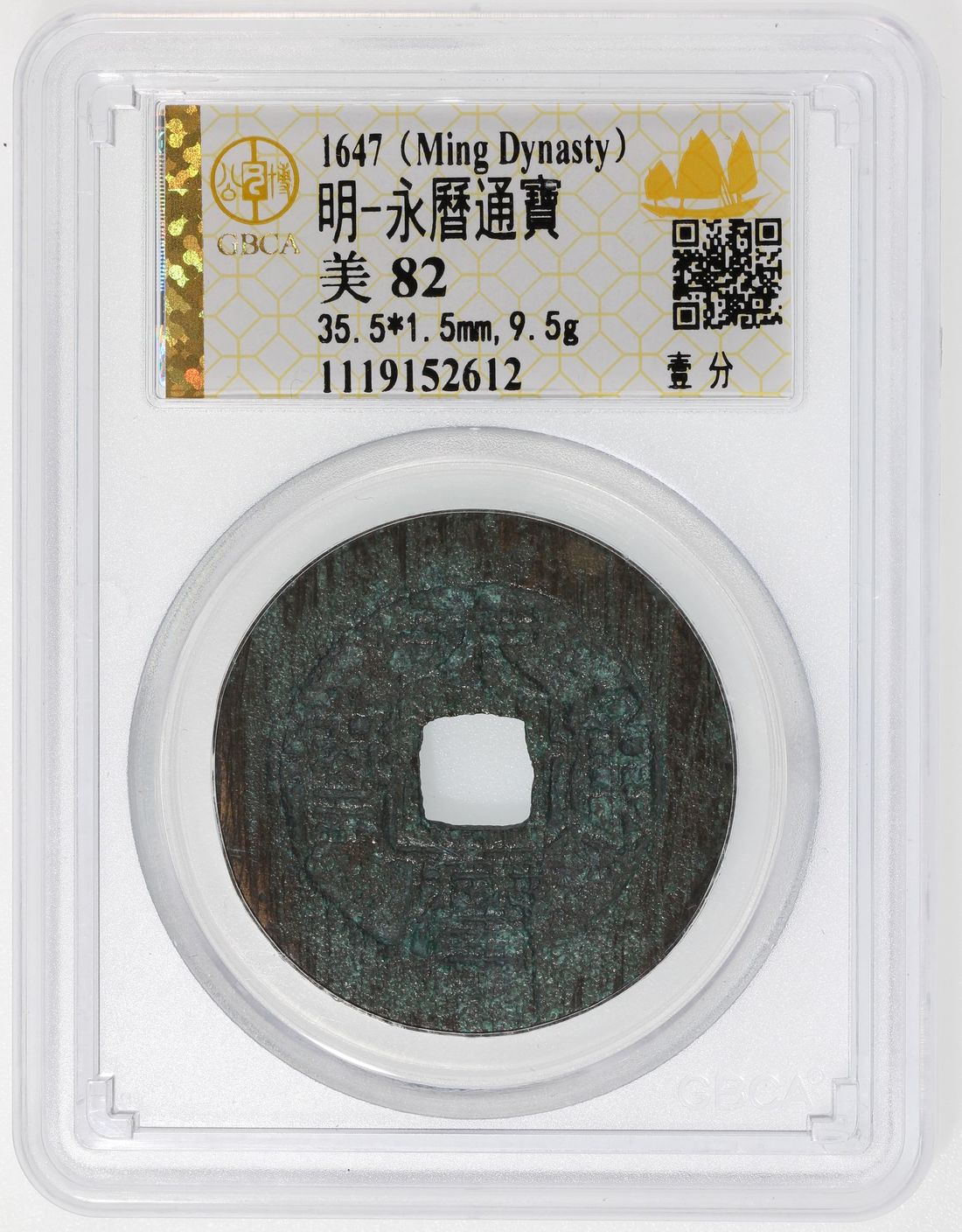 China, Ming / Qing Dynasty, [GBCA 82] brass 10 cash, 'Yong Li Tong Bao', 1647-1662, vertical 'Yi Fen' on reverse, issued by Southern Ming's Prince of Gui, 35.5x1.5mm, weighs 9.5g
