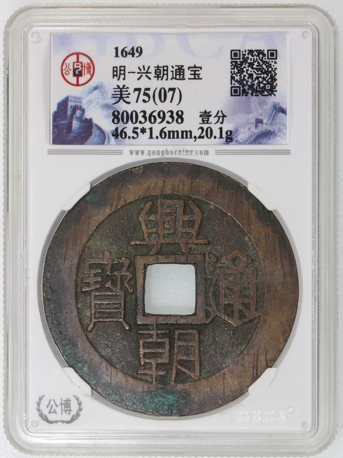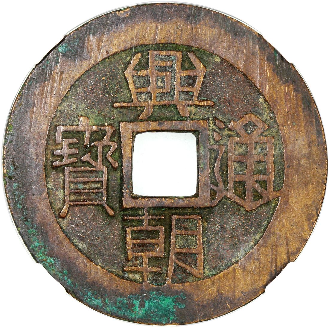 China, Ming Dynasty, [GBCA 75] brass 1 fen, Xing Chao Tong Bao, 46.5x1.6mm, weighs 20.1g