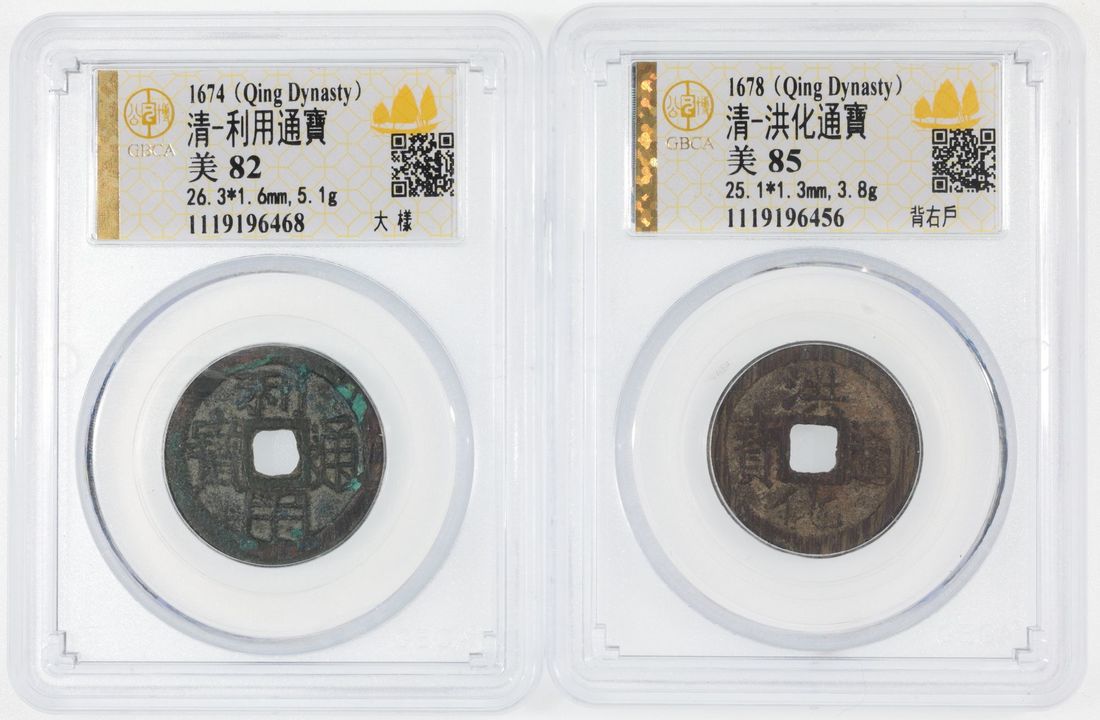 China, Qing Dynasty, a pair of Revolt of the Three Feudatories period brass 1 cash, including: - large type 'Li Yong Tong Bao', 1674-1678, GBCA 82