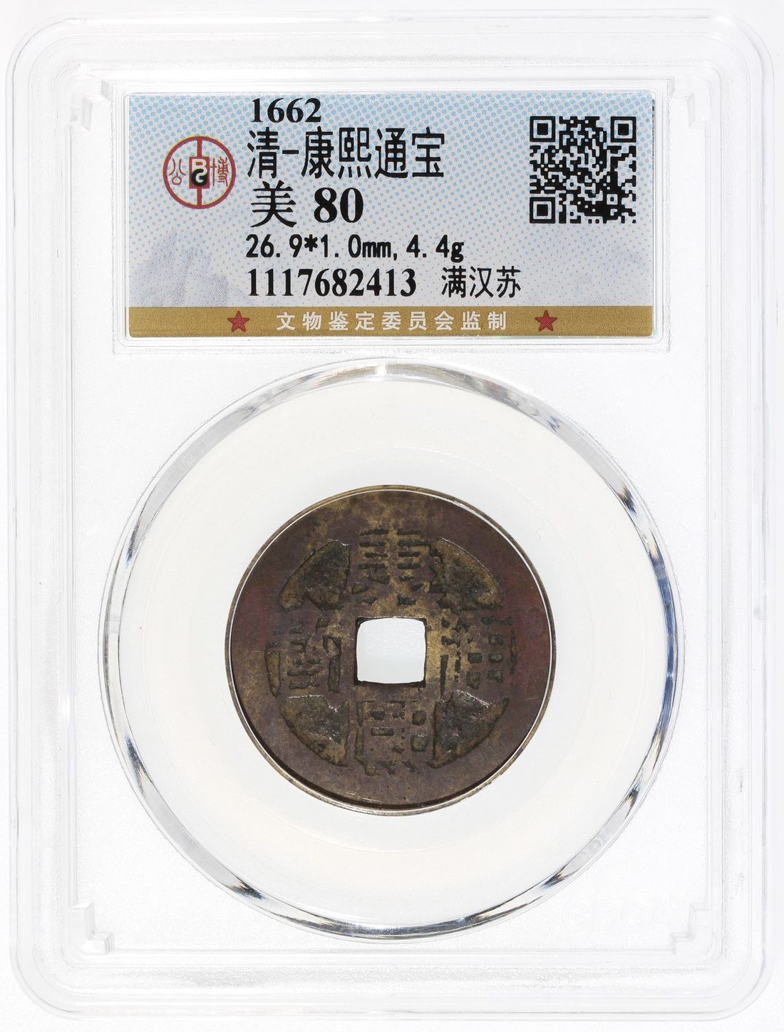 China, Qing Dynasty, [GBCA 80] cash coin, 'Kang Xi Tong Bao', Manchurian and Chinese characters 'Su' on reverse, 26.9x1.0mm, weight 4.4g
