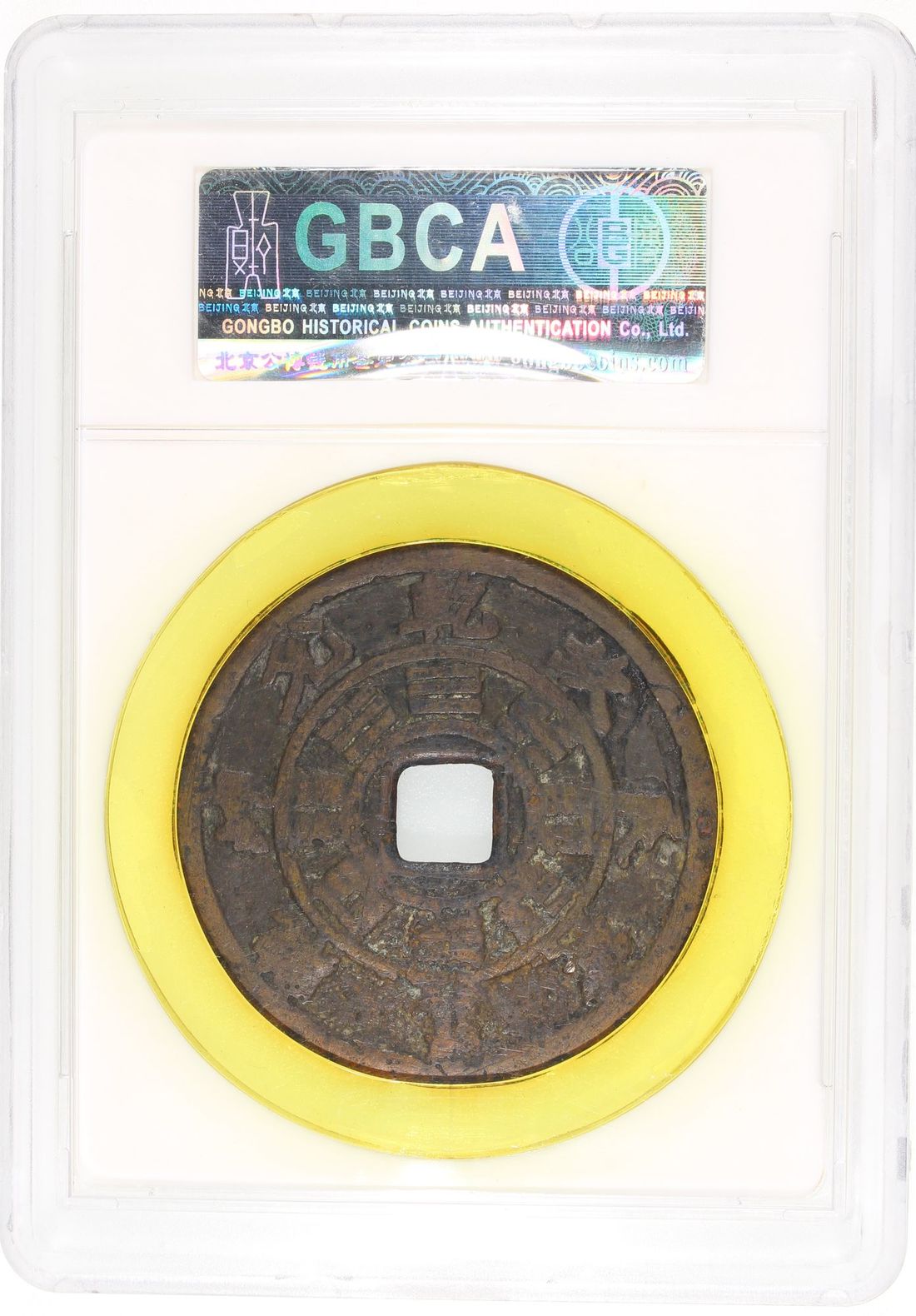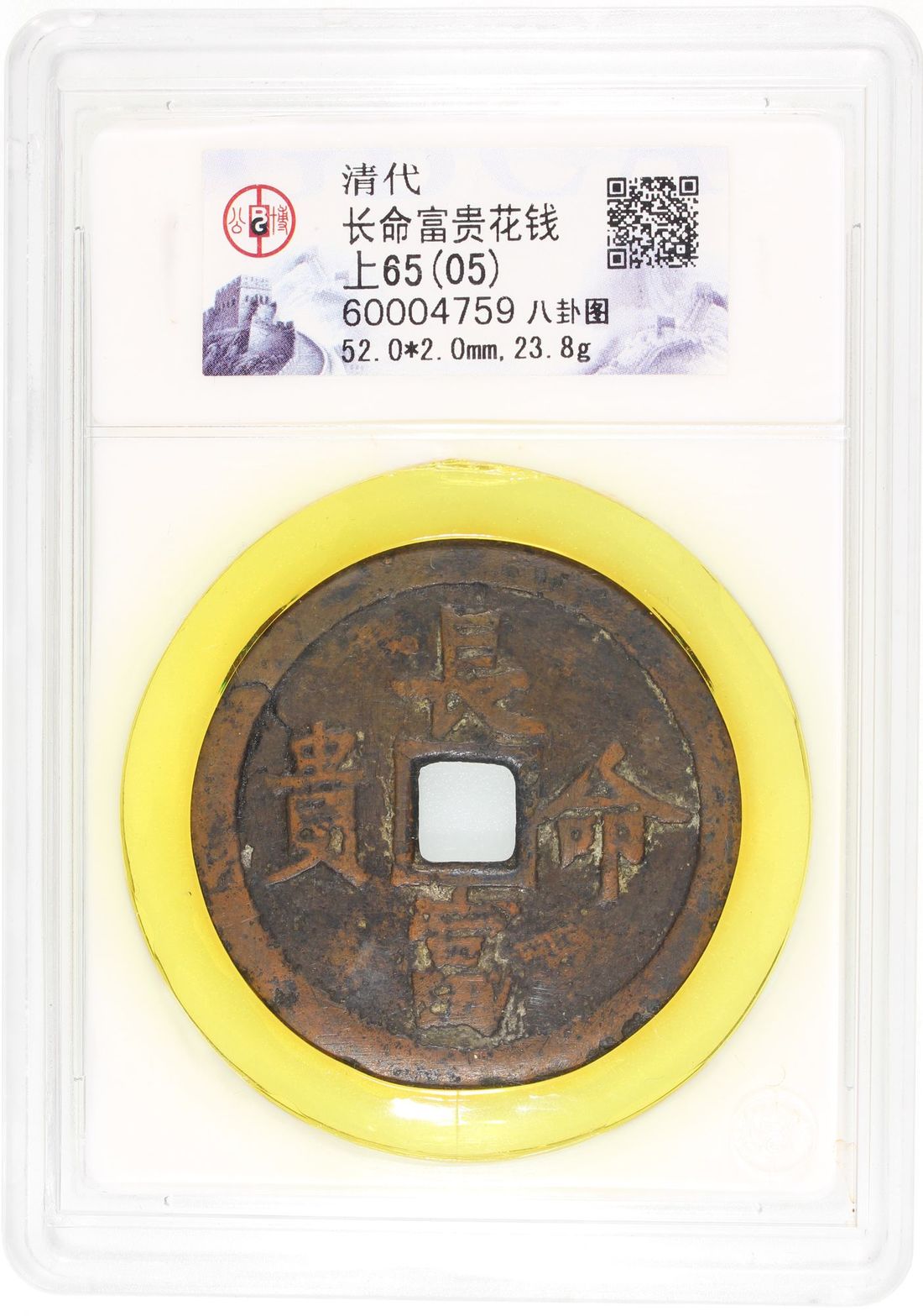 China, Qing Dynasty, [GBCA 65] coin like charm, 4 Chinese characters 'Chang Ming Fu Gui' on obverse, reverse showing Bagua, 52.0x2.0mm, weighs 23.8g