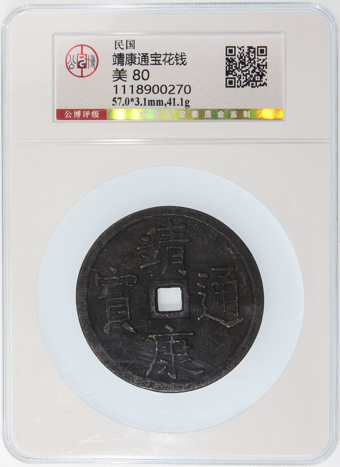 China, Republic, [GBCA 80] copper charm coin, 'Jing Kang Tong Bao', 57.0x3.1mm, 41.1g