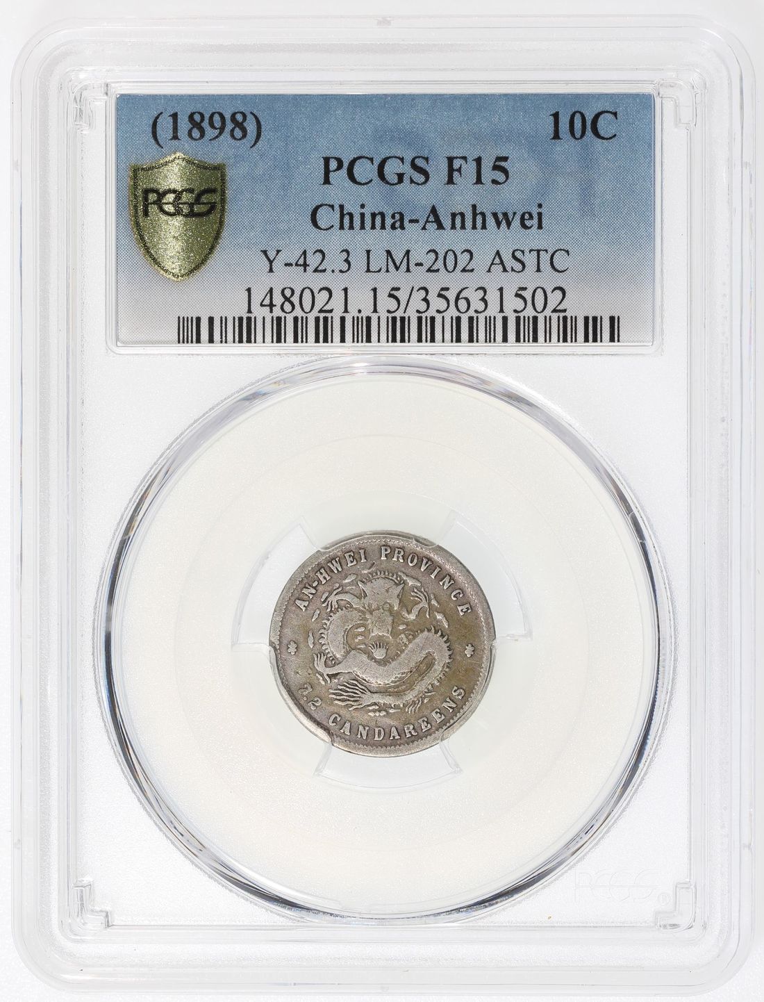China, Qing Dynasty, Anhwei Province, [PCGS F15] silver 10 cents, 24th year of Guang Xu (1898), 'Guang Xu Yuan Bao', with A S T C on reverse, (LM-202, K-60), Cert, #35631502
