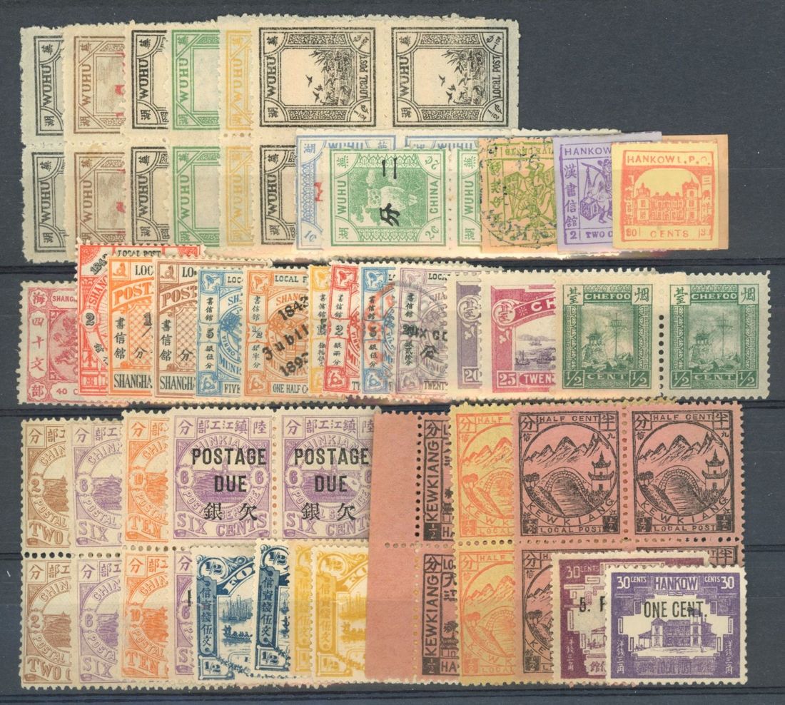1894-96 small selection of Local Post mint and used issues including Wuhu,Chinkiang,Kewkiang, some block of four.Fine.