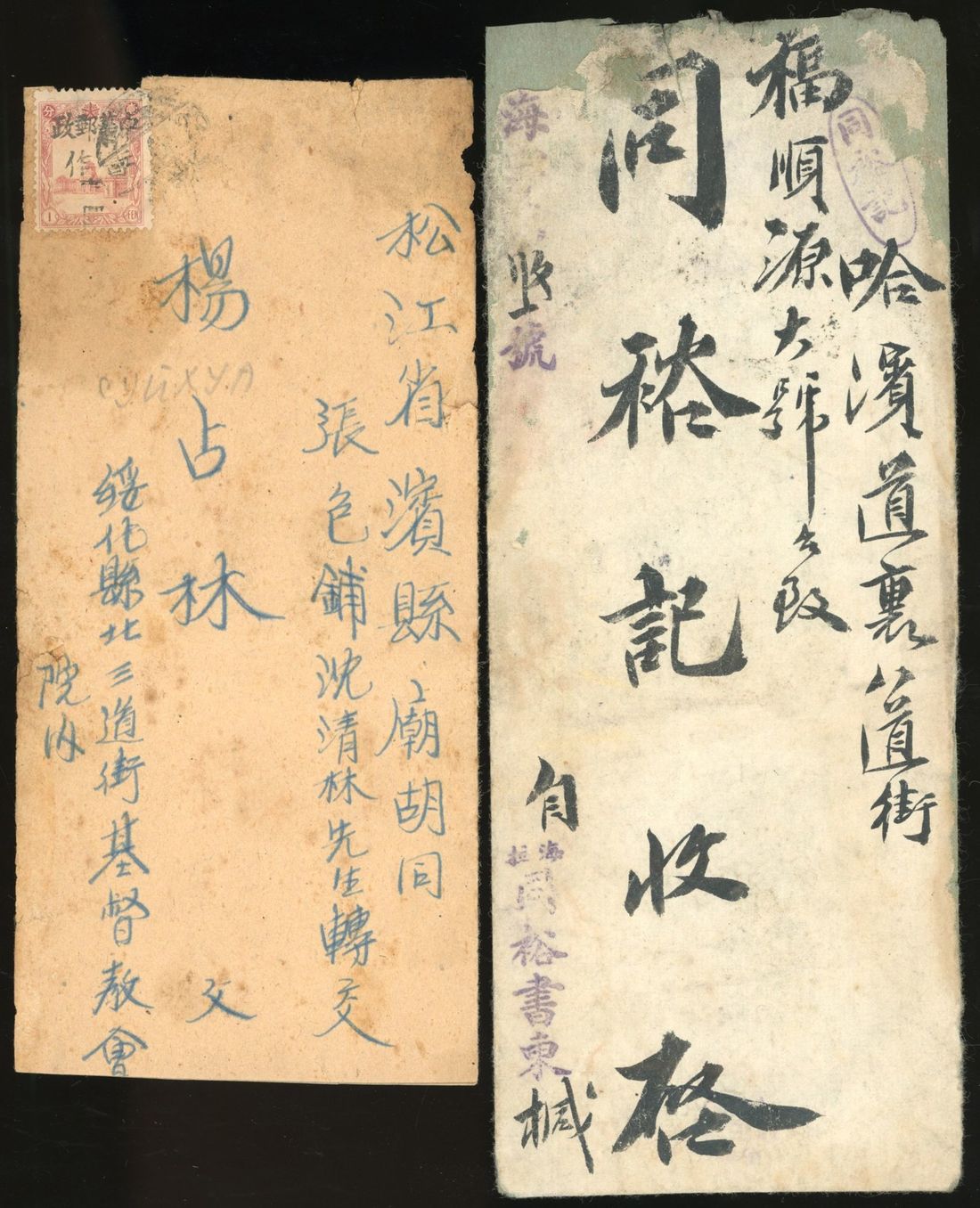 1919-1946 a group of five covers used in Northern East (Harbin) ,bearing with junk or Manchukuo and overprint on Manchukuo.Fine.