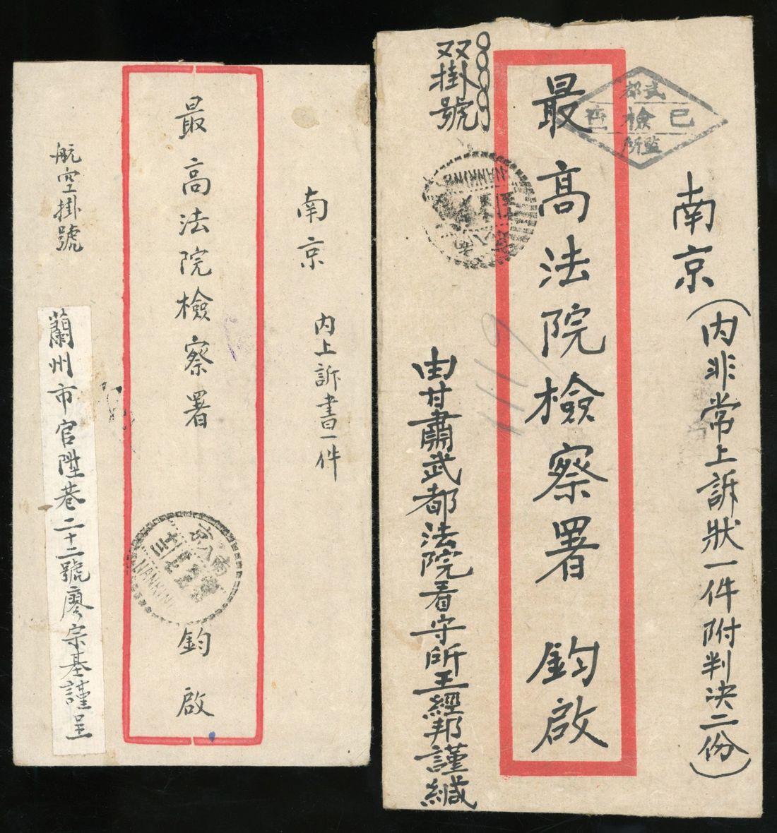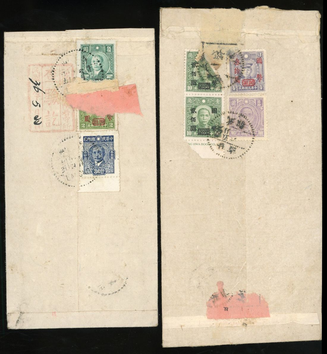 1947 three envelopes to Nanking, including airmail registered and double registered two bearing Dr. SYS. Fine.