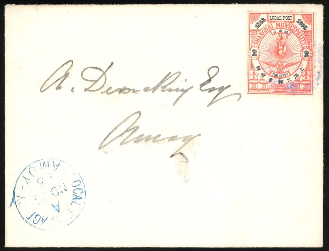 1893 (23 Novermber) cover from Shanghai to Amoy bearing Jubilee issue 2c with Amoy cds on front.