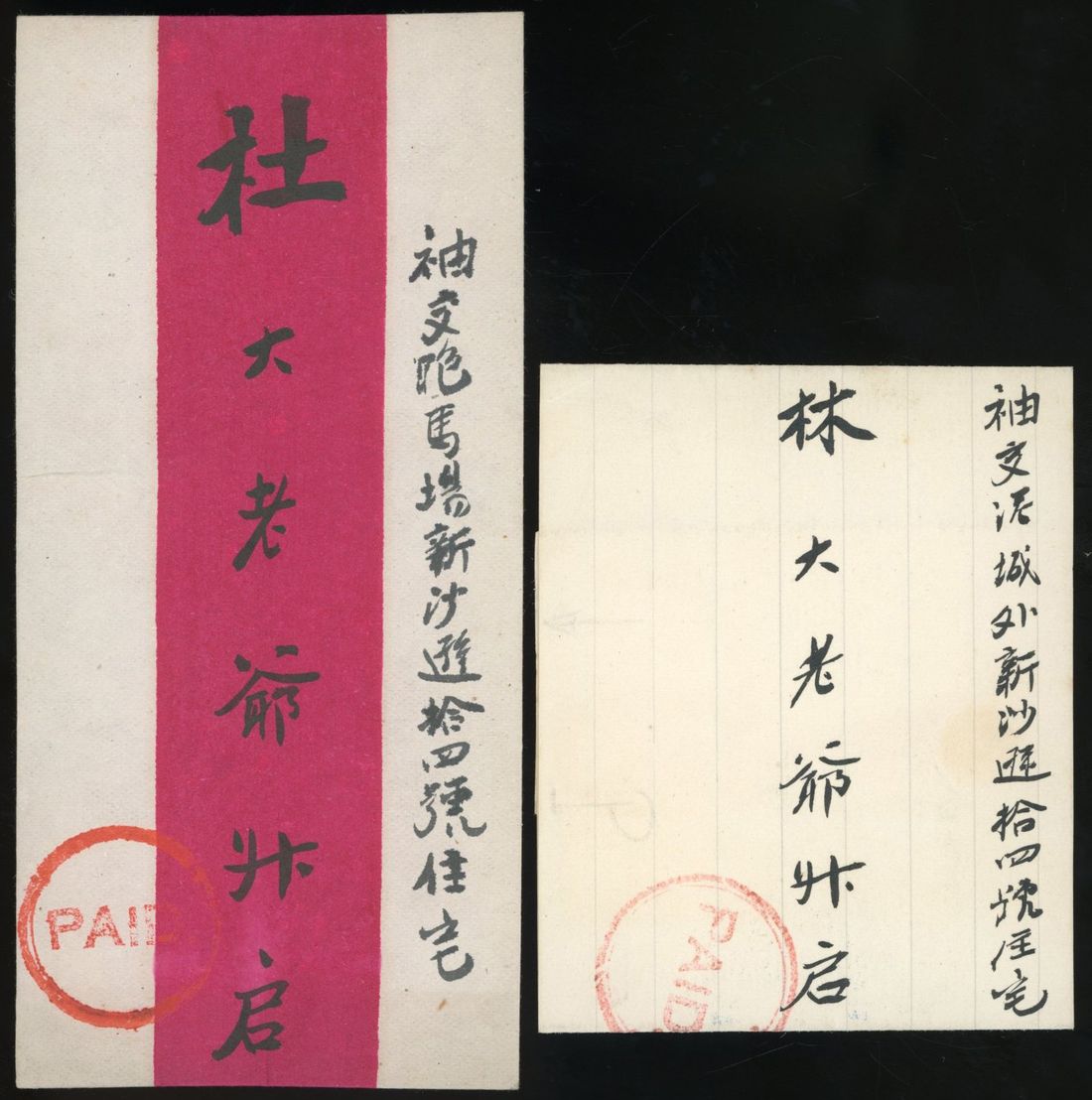 1893 Newspaper wrapper and red band cover both tied by circular 'Paid' chop in red, arrival cds on backs.