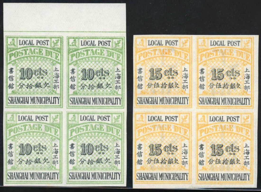 1893 Lithographed issue 1/2c to 15c imperforate essays in blocks of 4, very fine and rare.