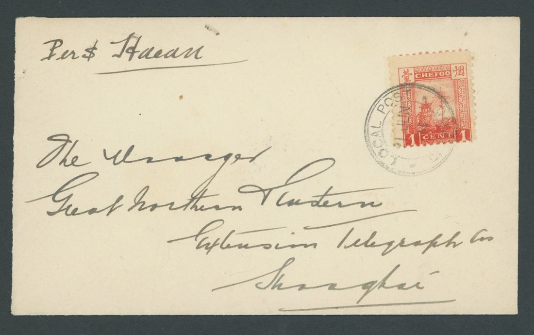 1894 (21 Jan.) cover from Chefoo to Shanghai bearing second issue 1c., the reverse bearing Shanghai Local Post arrival c.d.s.