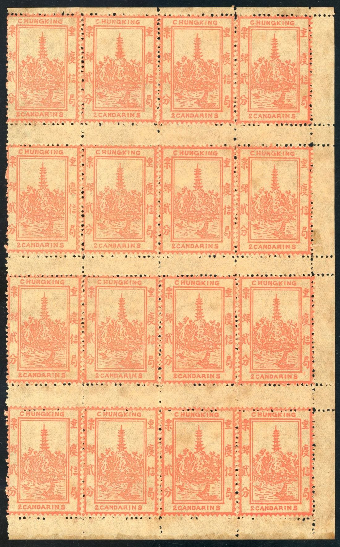 1893 First Issue early printing 2c red orange block of 16 mint, lightly toning,fine. Chan LCK1