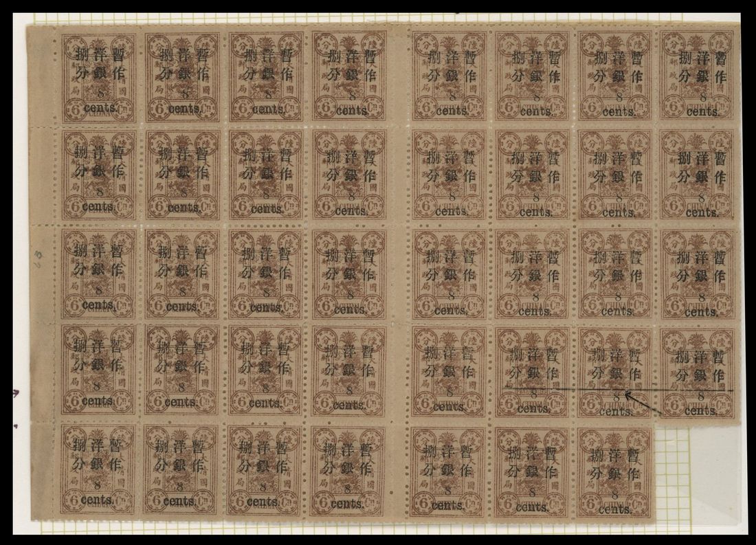 8c on 6c block of 39 with minor varieties including 3.5mm. Chan 42.