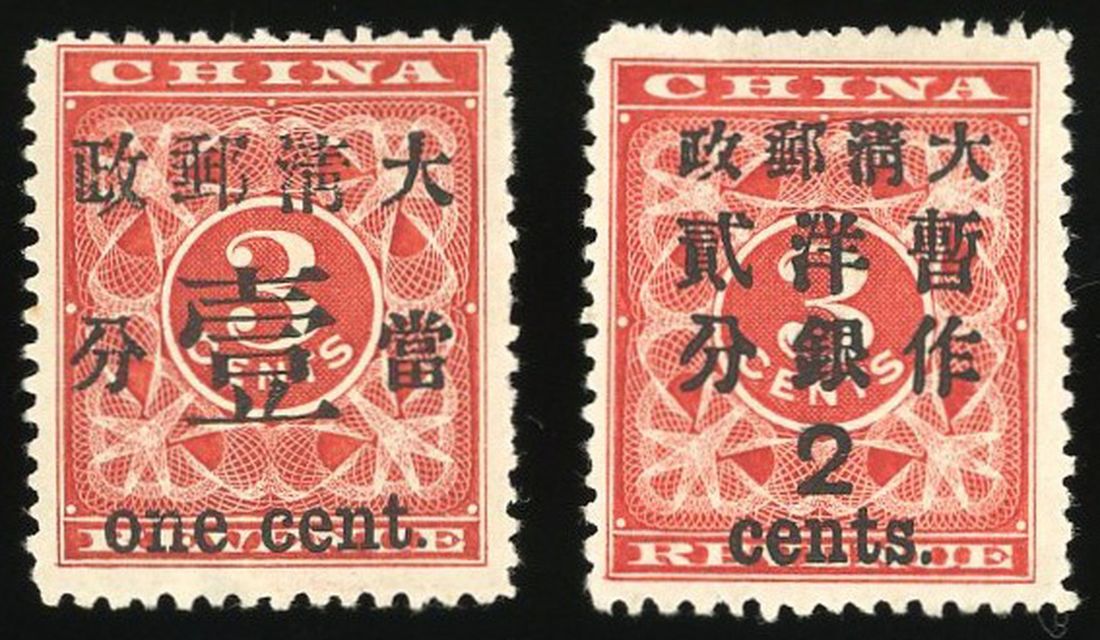 1c. on 3c., mint with original gum plus 2c. on 3c., unused without gum, very fine. Chan 87, 88. Photo