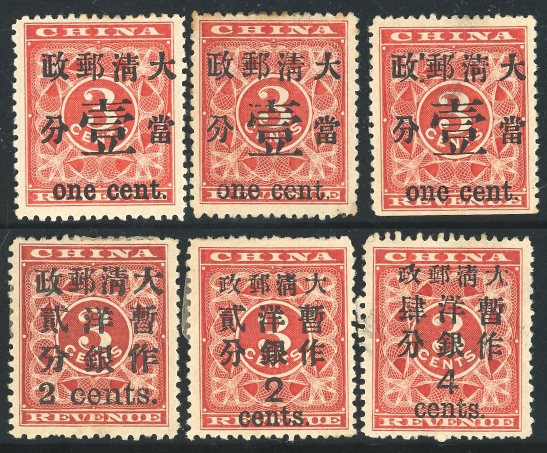 Mint selection with one cent x 3, small and large 2c, large 4c. Fine to very fine.