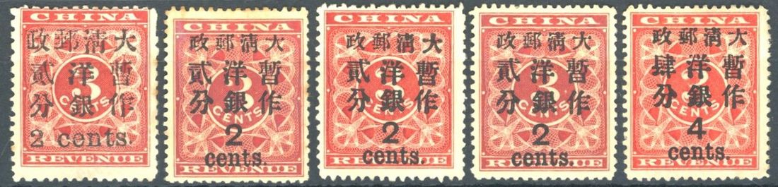 Small 2 cents, large 2 cents x 3, large 4 cents with thin. All mint no gum or hinged.