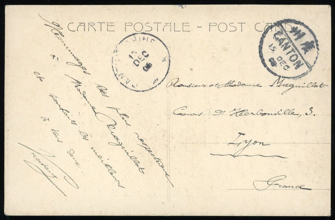 1908 (15 Dec) picture postcard to France bearing CIP 4c tied by Canton c.d.s. Fine.