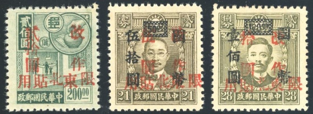 1946 Unissued Chinchow surcharge set complete mint. Chan NE32-34.