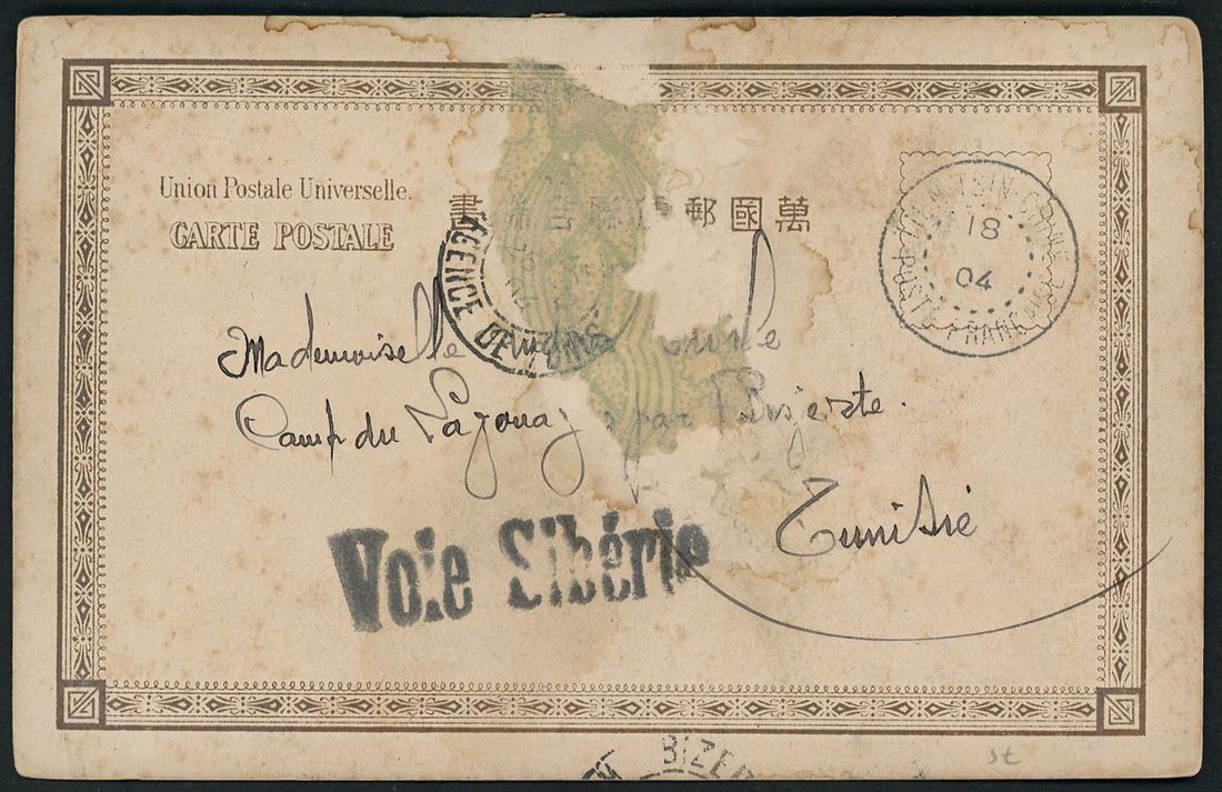 1904 (18 Nov) picture postcard to Tunisia bearing French Post Office in China 10cts tied by 'Tientsin-Chine Poste Francaise' c.d.s.Ex Derousseaux.