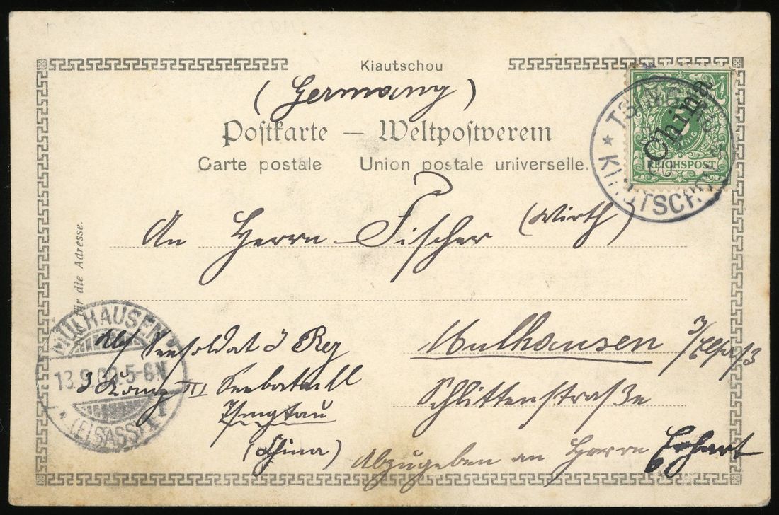 1900 (3 August) postcard from Tientsin to Germany bearing German post Office in China 5pf with arrival (13 September). Photo