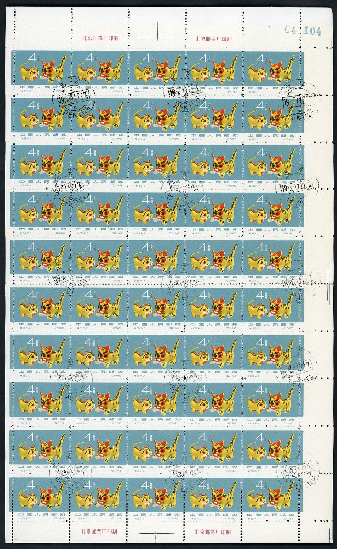 1956-65 Small group of CTO used stamps in complete sheets. S14 3-1 4f. (2) sheets of 80. S19 4-3 8f. (1) sheet of 84. S55 6-1 4f. (4) sheets of 50. S58 9-7 (1) sheet of 50. S73 8-4 8f. (1) sheet of 50.Also S55 6-5 30f. in strip of 5 x50.All CTO used.Fine.