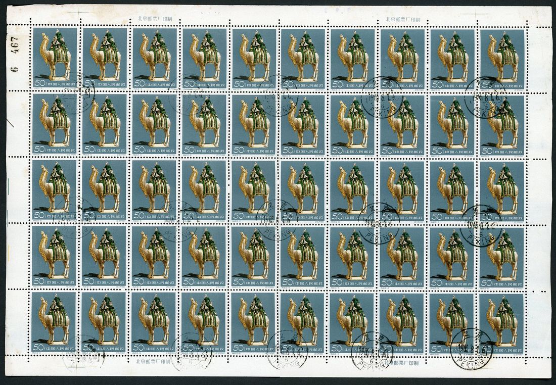 1961 (10 Nov) S46 Pottery of Tang Dynasty. 50f. Camel (5) sheets of fifty and half sheet of 25.CTO used. Total 275 stamps.Full oringinal gum with minor toning.
