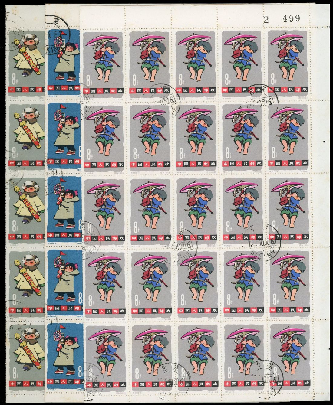 1963 (1 Jun) S54 Children Day 12-4,6,8 in complete sheet of 50, all CTO used, toning.
