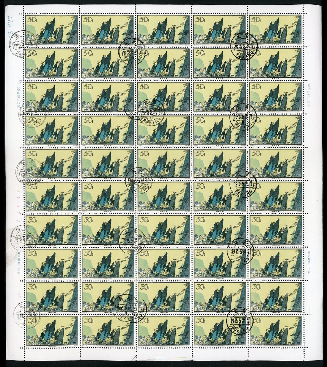 1963 (15 Oct) S57 Yellow Mountain. 50f. Complete sheet of fifty. CTO used with original gum.Very fine.