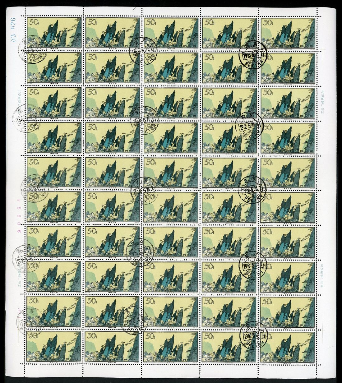 1963 (15 Oct) S57 Yellow Mountain. 50f. Complete sheet of fifty.CTO used with full original gum.Very fine.