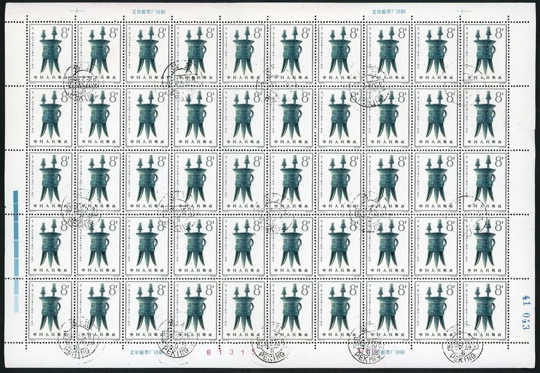 1964 (25 Aug) S63 Bronze Vessels of the Yin Dynasty.8-4 8f. 'China' 19 full sheets of 50.All CTO used in very fine condition.