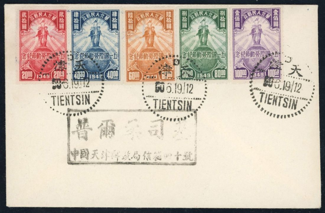 1950 (19 Jun) envelope to local bearing North China "May 1st" International Labour Day complete set and tied by Tientsin c.d.s. Fine.
