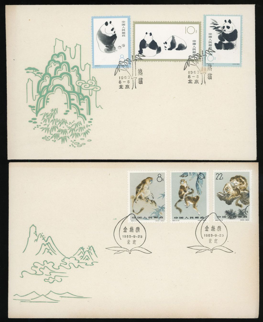 1963 (5 Aug) S59 Giant Panda ,and S60 Golden-haired Monkeys, first day covers, lightly toning,fine.