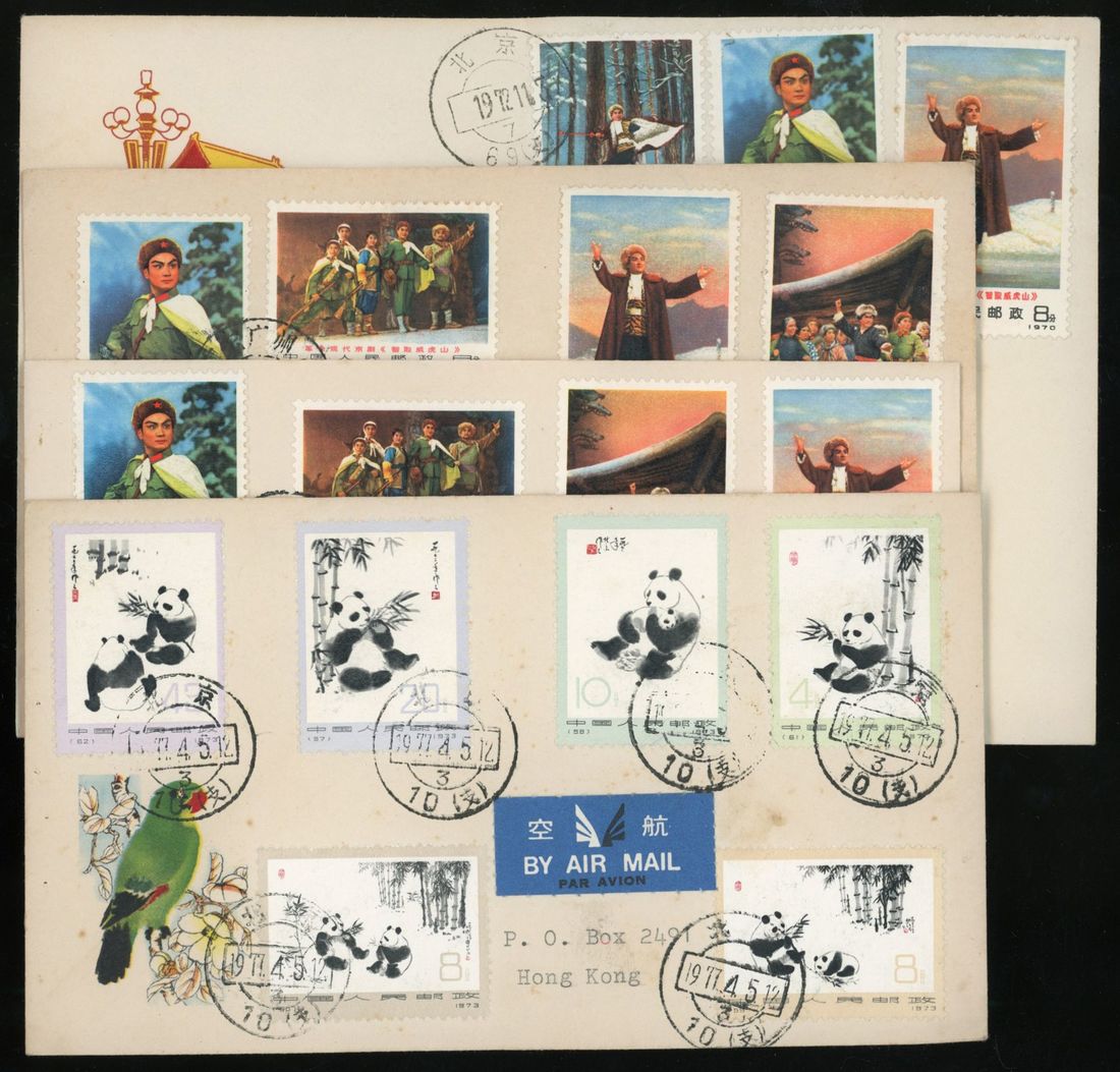 1970s four cover ( tied by Peking and one by GuangZhou) of N1 and N14, two air mail used to Hong Kong.Fine.