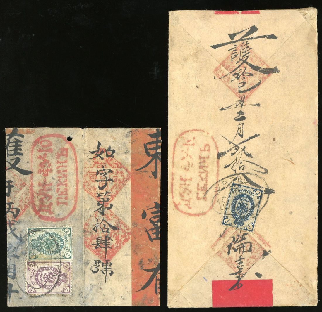 1889 (29 March) cover from Urga to Pekin via Kalgan bearing Russian 7k, the Urga cancel is type 3C. Plus piece bearing 5k and 2k tied by Urga c.d.s.. Photo