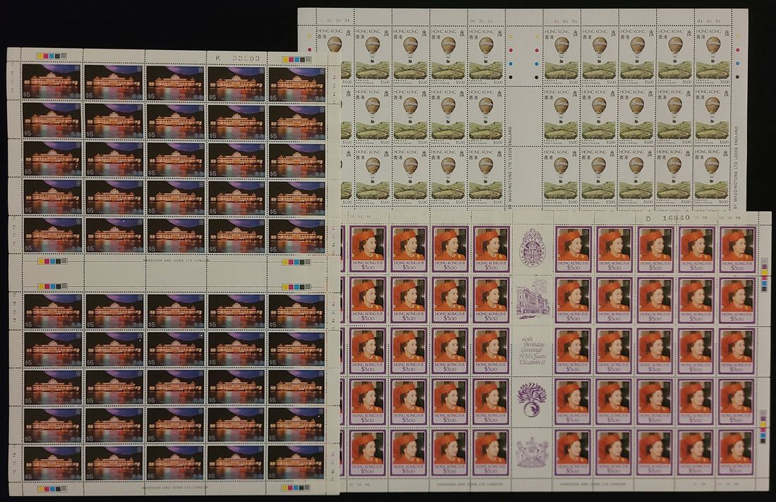 1983-88 collection of commemorative issues in full sheet including 1983 Hong Kong by Night,Centenary of the Royal Observatory, 1984 Aviation in Hong Kong, Maps of Hong Kong, Chinese Lanterns to 1988 Centenary of Hong Kong Catholic Cathedral. Almost complete from 1983-88.Fine.