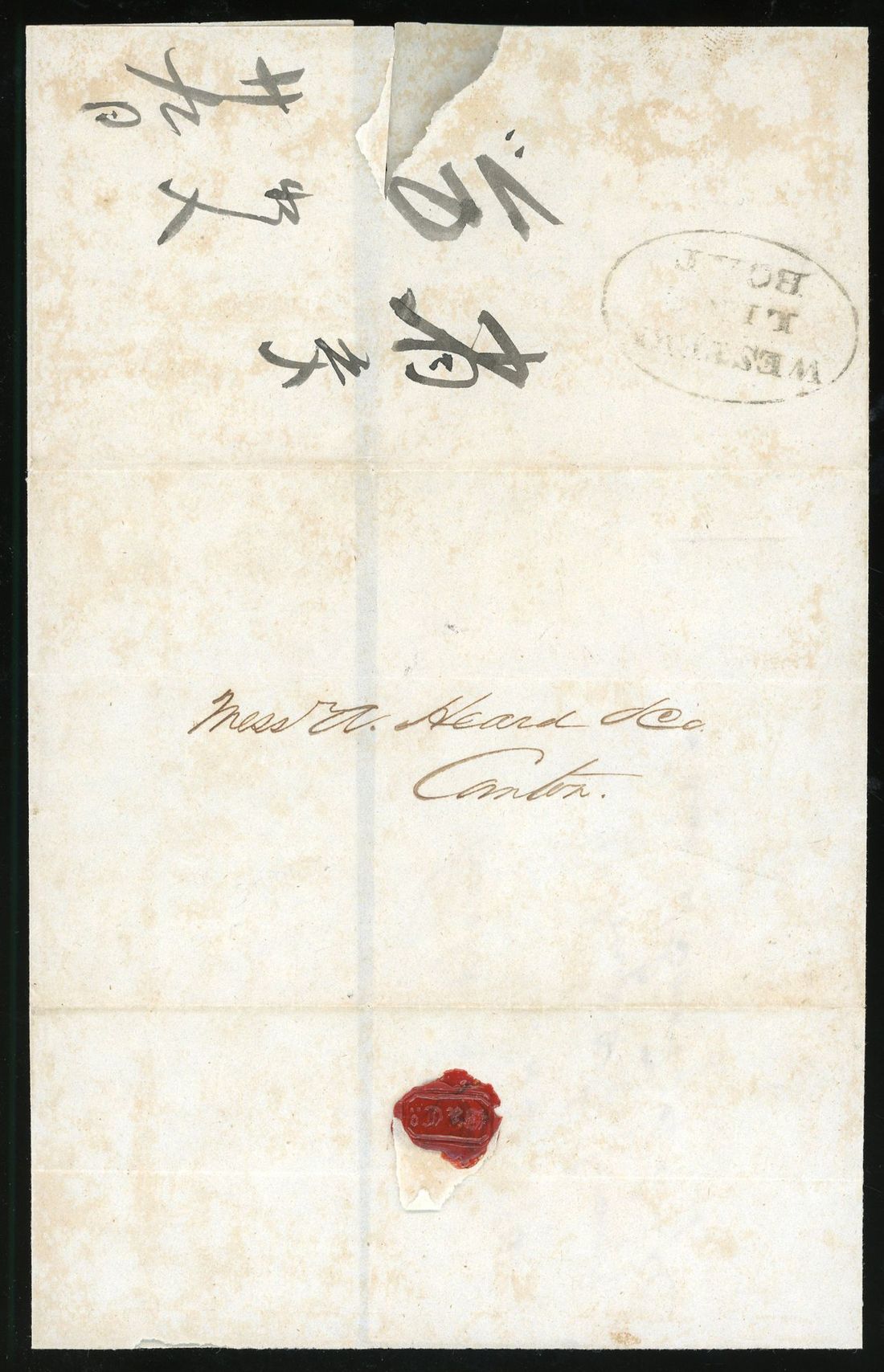 1845 (28 November) entire letter sent locally from Bush & Co. to Augustine Heard with oval 'Western/Line Boat' handstamp (Webb 203 type B), fine. Photo